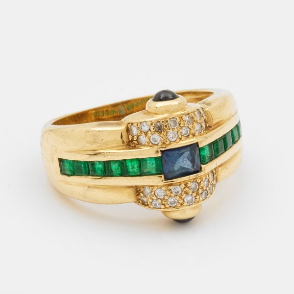 Lot 3435: Dekorativer Saphir-Smaragd-Bandring