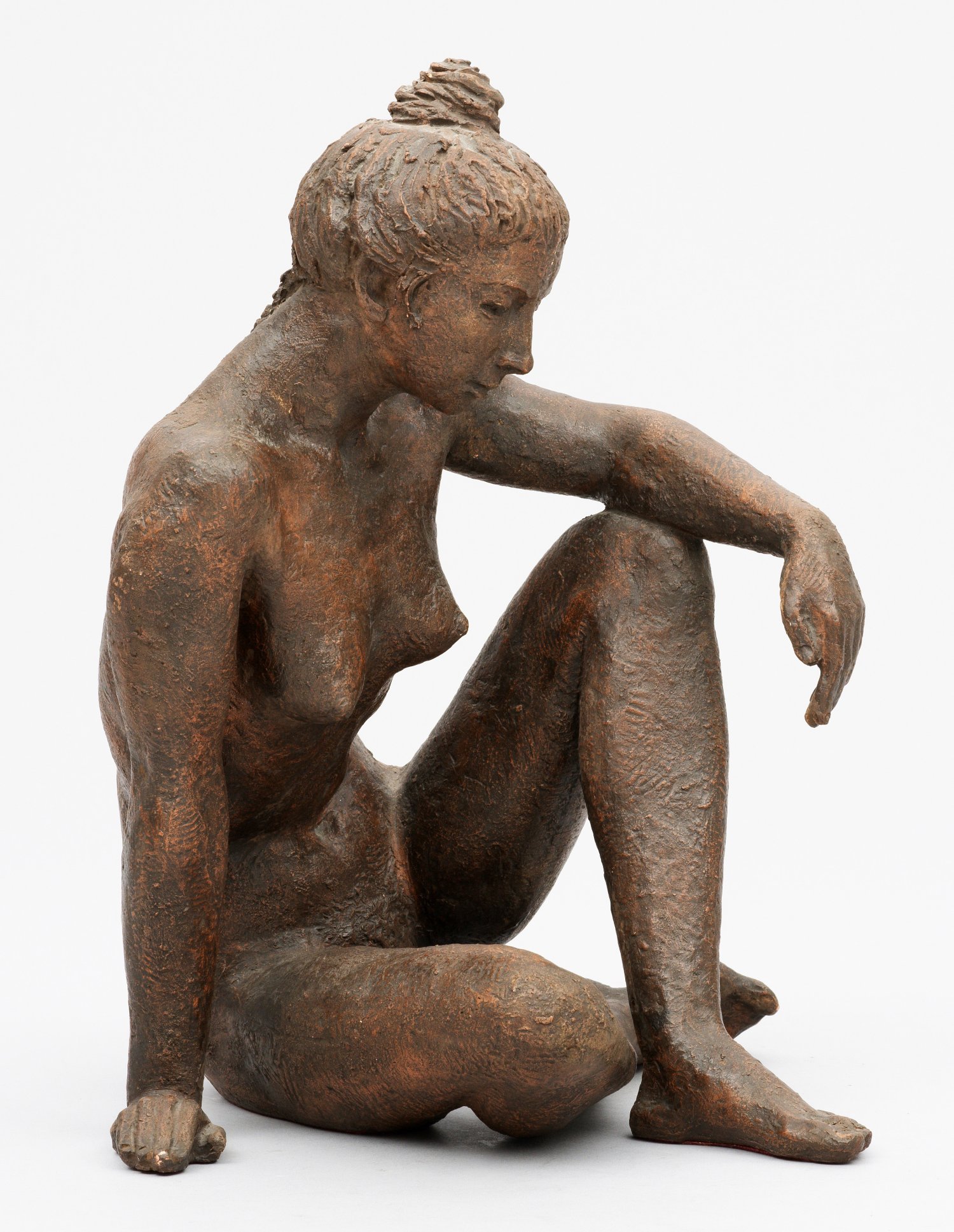 Keramik, dunkelbraun engobiert. Monogramm-Pressmarke "GA" in Ligatur. Der Bildhauer Georg Arfmann studierte 1946-1950 an der "Staatlichen Kunstschule" (heute Hochschule für Künste) in Bremen, arbeitete danach freiberuflich, seit 1972 auch als Fachlehrer an der Steinmetz- und Bildhauerschule in Königslutter. Zahlreiche Arbeiten befindeten sich im öffentlichen Raum, vorwiegend in Norddeutschland. H. 32,5 cm.