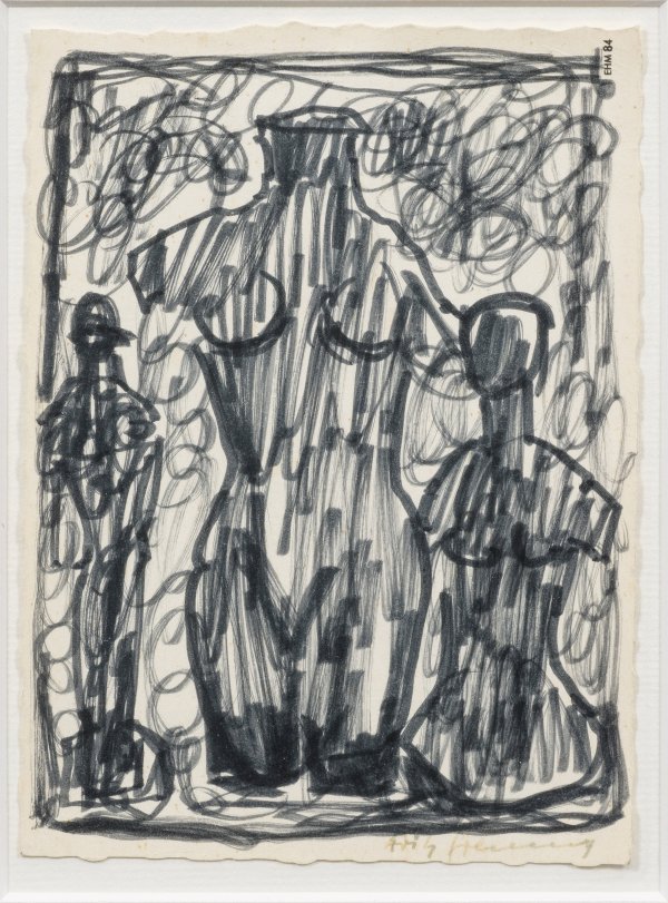 Faserstift/leichter Karton.; Sign. sowie mit gedruckter Bez. "EHM 84". Verso auf einem Offsetdruck handschriftlich bez. "Entwurf zu einem Bild aus dem Jahr 1932". 14,5 cm x 10,5 cm. Rahmen.