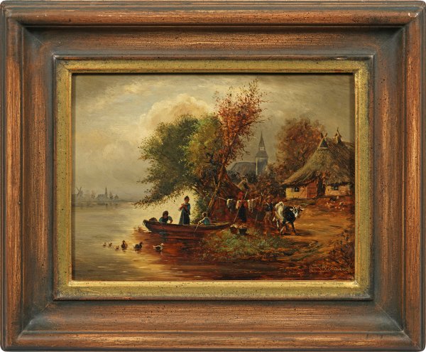 Nostalgisches, stimmungsvolles Motiv des 19. Jhs. in der Tradition von Wilhelm Alexander Meyerheim. Öl/Holztafel. R. u. sign.; 18 cm x 24 cm. Rahmen.