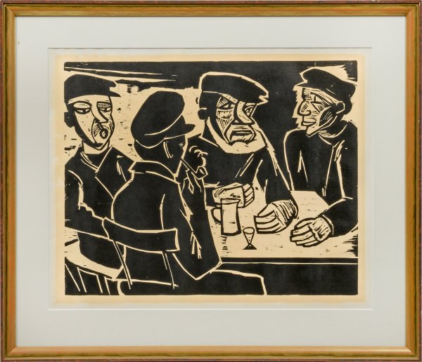 Holzschnitt/Papier, 1922/1961. Abzug aus einer posthumen, unnummer. Auflage von 300 Expl. für die Griffelkunst Hamburg (Wasserzeichen), 1961. Verso Nachlass-Stempel. Wvz. Krüger H 274. Blatt ca. 49 cm x 61,5 cm. Darstellung ca. 39,3 cm x 49,3 cm. Rahmen.