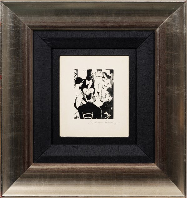 Holzschnitt/satinierter Karton, 1925. Sign. u. dat. (19)25. Wohl einer von 85 Handabzug-Exemplaren (bzw. Künstlerexemplaren) neben der nummerierten Auflage von 250 Exemplaren in der Edition Panderma, Carlo Lazlo, Basel 1966 (oder 1969). Darstellung ca. 12,1 cm x 9,6 cm. Rahmen.