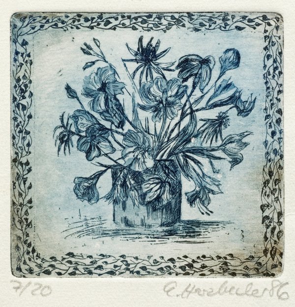 Farbradierung/Velin. Sign., dat. (19)86 u. nummeriert 7/20. Plattenmaß 9,9 cm x 10,1 cm. Blatt ca. 32 cm x 25 cm. Rahmen.