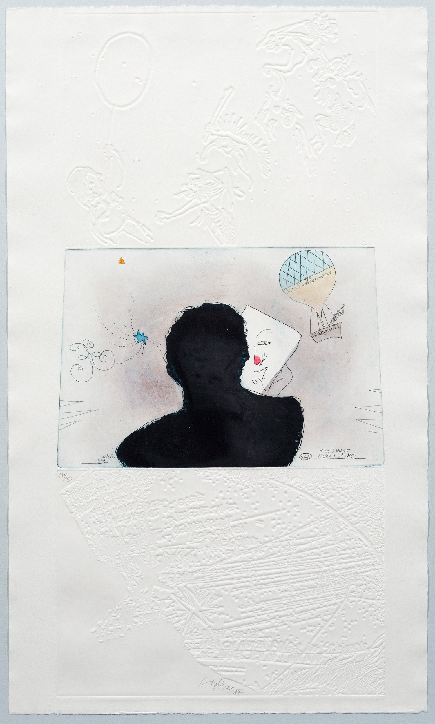 Etching in colours with embossing on laid paper, 1987. Hand-signed, dated and numbered 111/150.