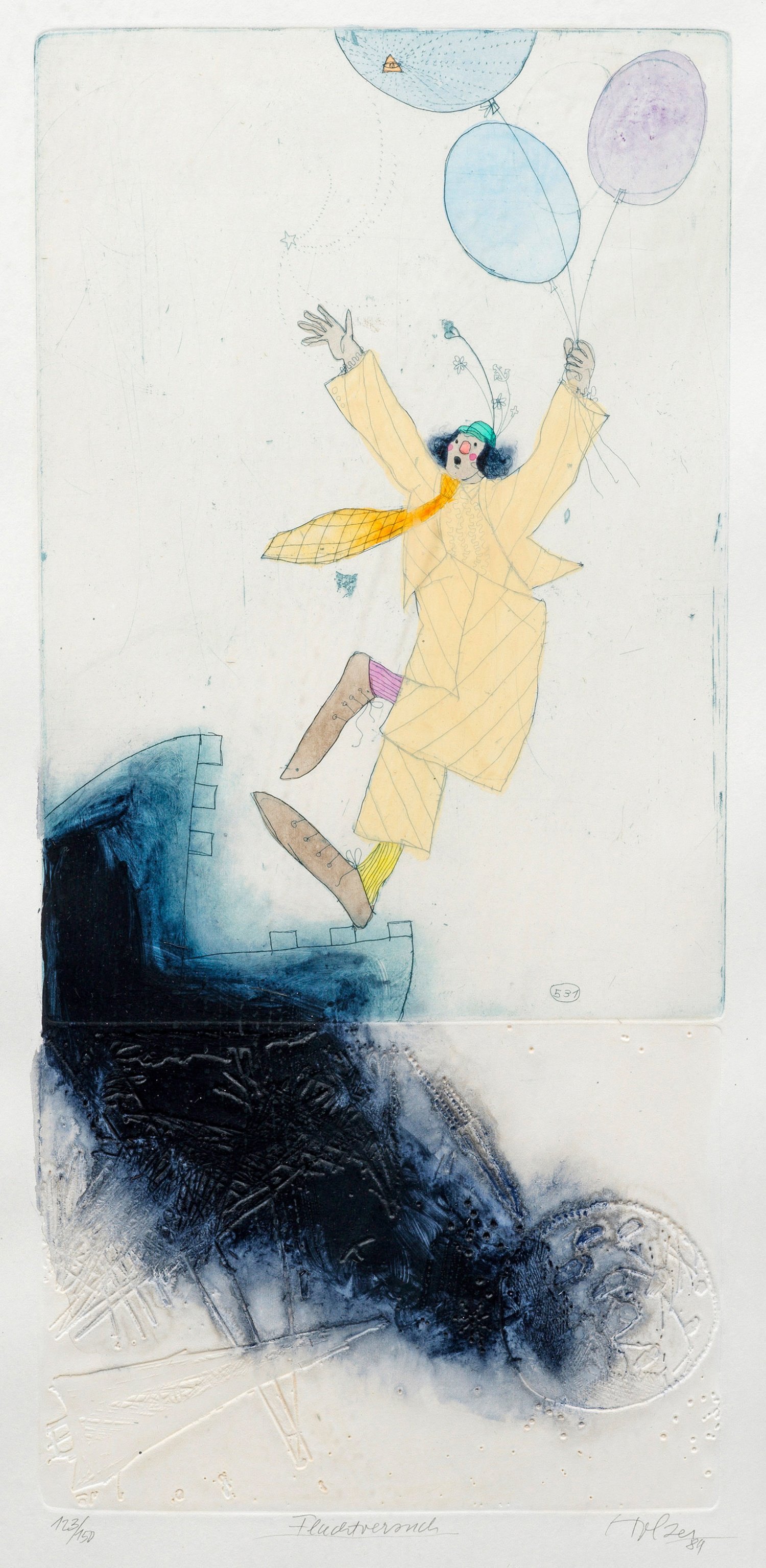 Etching in colours with embossing on laid paper, 1984. Hand-signed, dated and numbered 123/150.