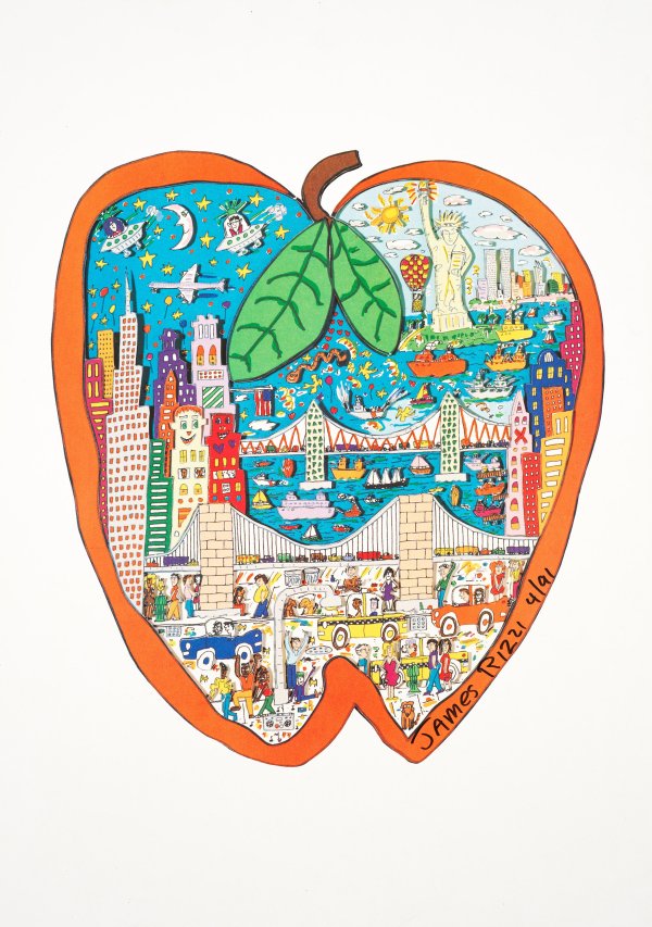 Farboffset/Papier. Sign. u. dat. "4/(19)91)" mit schwarzem Filzstift. Von Rizzi in mehreren Versionen ausgeführte Darstellung des Lebens in seiner Heimatstadt- dem "Big Apple" New York. Blatt 70 cm x 49,5 cm.