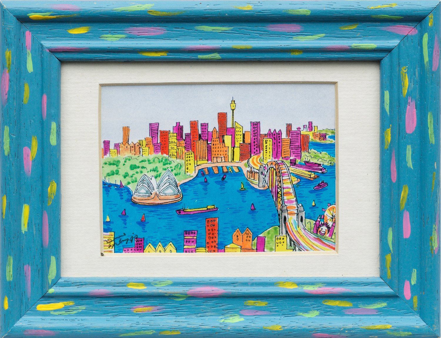 Druckgrafik in Farbe/Papier. L. u. sign. "Done(?)" mit Ortsangabe Sydney u. dat. (19)91. 7,8 cm x 10,2 cm. Rahmen.
