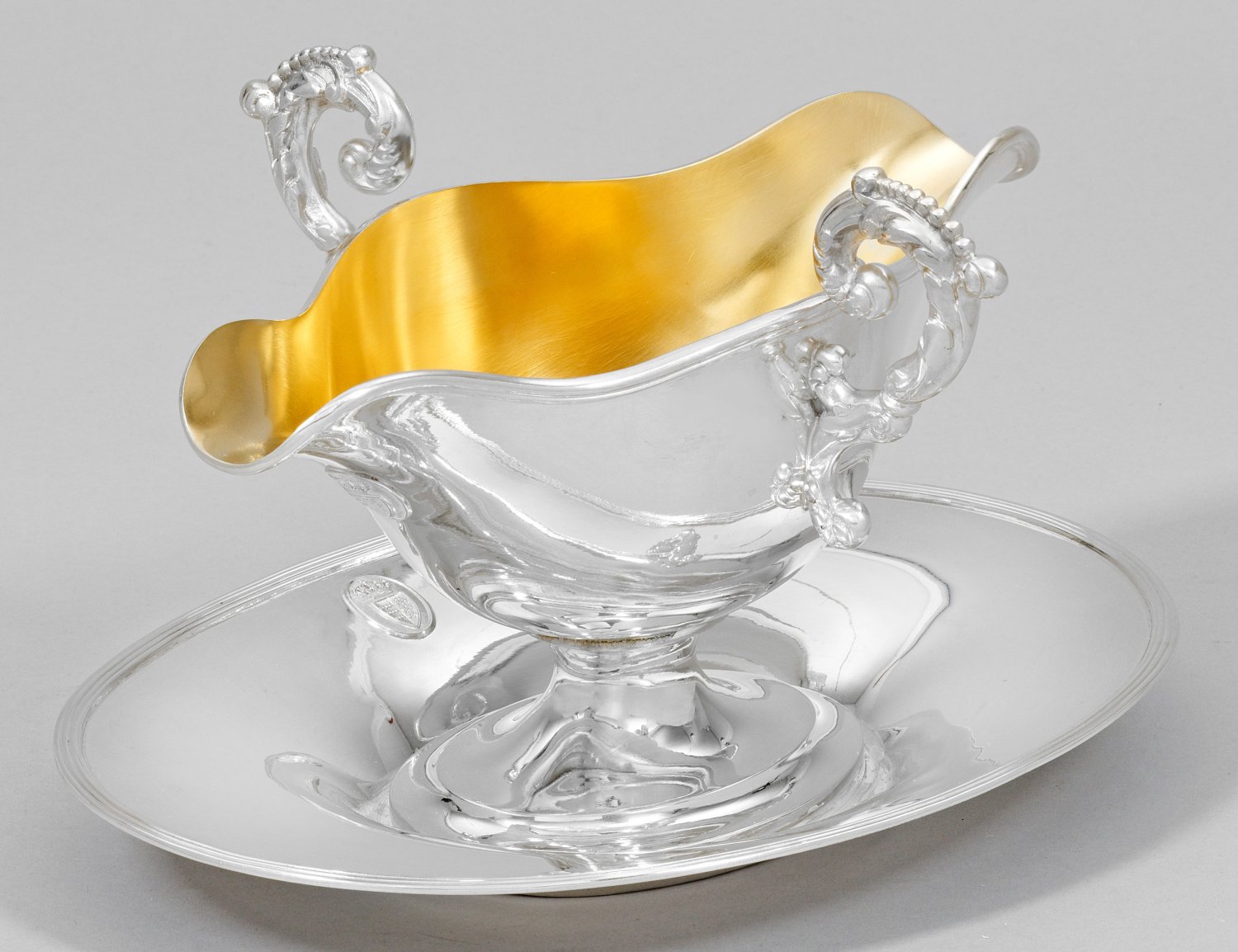 A German silver sauce boat with the coat of arms of the King of Württemberg. Gilt inside. Test, assay and unknown maker´s mark.