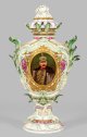 An important porcelain potpourri vase with portrait of the German Emperor William II. and a view of the New Palais in Potsdam. Partly painter's mark for M. Dürschke. Sceptre and painter's mark.