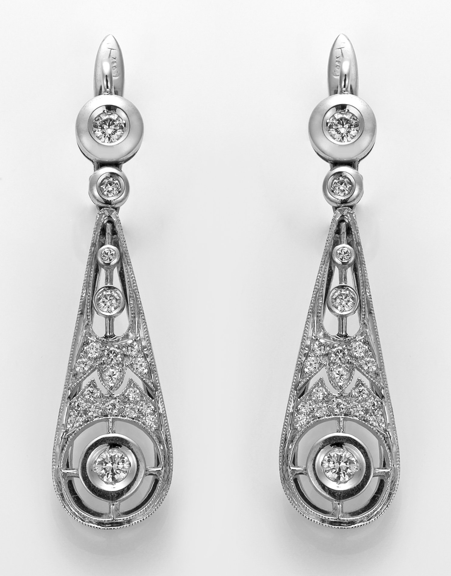 Pair of earrings set with diamonds approx. 1,10 ct., in 18 k white gold.