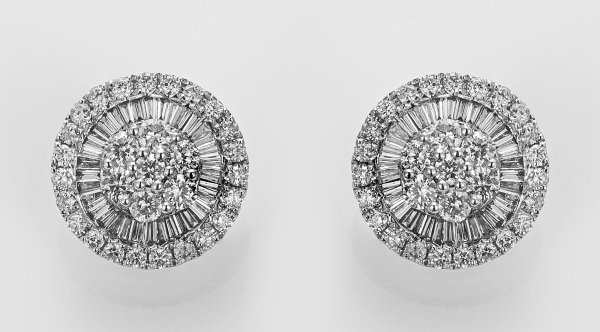 Pair of earrings set with diamonds approx. 1,56 ct. (G/vsi-si), in 18 k white gold.