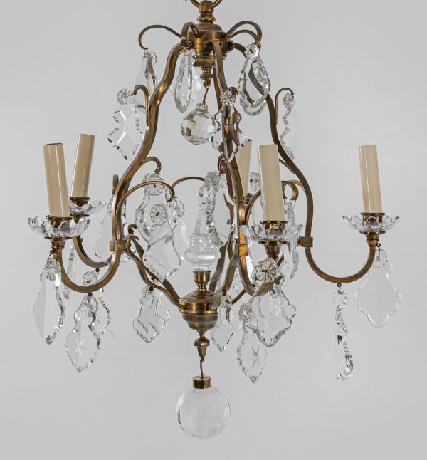 A French brass and glass chandelier.