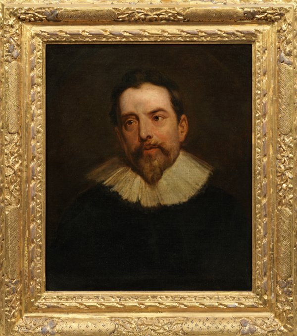 Feinmalerisches, um 1700 geschaffenes, subtil charakterisiertes Bildnis eines Herren mit Spitzbart und weißem Mühlsteinkragen. Die Komposition geht auf das "Bildnis eines unbekannten Mannes" von Anthony van Dyck, gemalt um 1630, zurück, das sich heute in einer Privatsammlung in England befindet (RKD Nr. 51179). Öl/Lwd., doubliert. Verso diverse handschriftliche Beschriftungen bzw. Nummern. 62 cm x 51,3 cm. Rahmen.