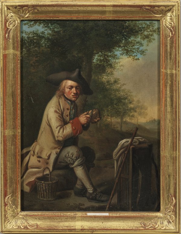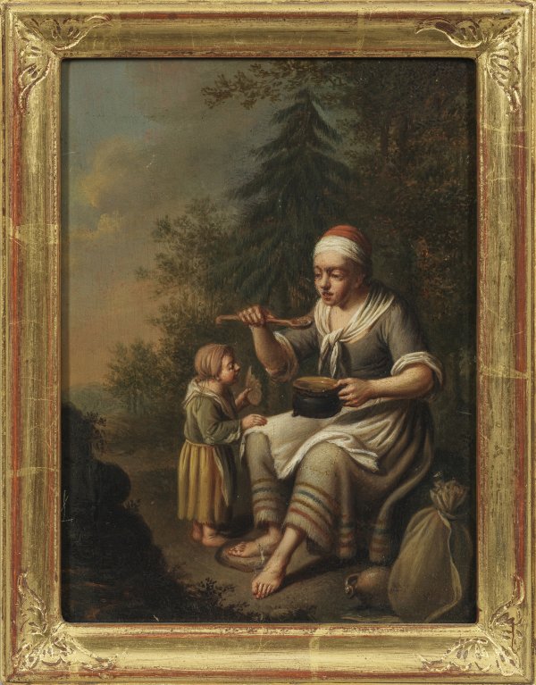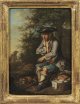 Als Gegenstücke konzipierte, in fein lasierender Malweise ausgeführte Darstellungen von jungen Männern und Frauen in vorwiegend ärmlicher Kleidung bzw. vor korrespondierender Behausung, darunter eine Frau mit ihrem Knaben beim Freilassen eines Vogels vor ihrer Hütte. Bager stammte aus einer weitverzweigten Wiesbadener Künstlerfamilie. Als vielseitiger Porträt-, Genre-, Landschafts- und Stilllebenmaler ging er in die nahe, florierende Stadt Frankfurt am Main, wo er rasch zu einem gefragten Künstler wurde, den u. a. der angesehene Vater Goethes mit Gemälden beauftragte. Öl/Holztafel. Ein Gemälde r. u. sign.; Je 18,5 cm x 13,7 cm. Rahmen.