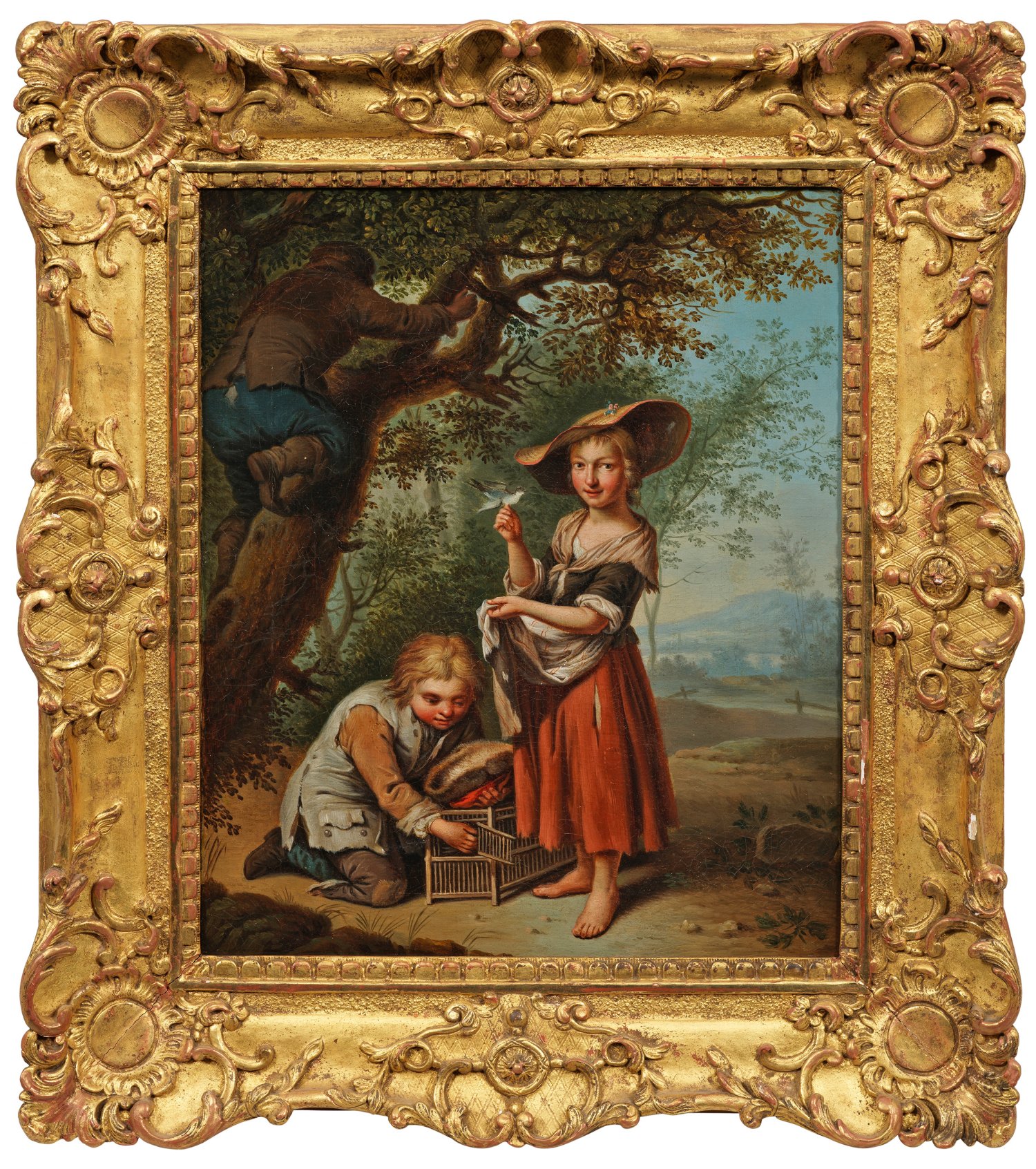 In fein nuanciertem Kolorit, feinflüssig ausgeführtes, feinfühlig charakterisiertes Genrebild, dessen Motiv Seekatz mehrfach umsetzte, vgl. u. a. die 1750 entstandene Version im Historischen Museum der Pfalz in Speyer (Inv.-Nr. BS_3257). Seekatz schuf unter dem Einfluss der niederländischen und flämischen Barock-Malerei mit Vorliebe kleinformatige Tafelbilder, u. a. Genreszenen aus dem ländlichen Leben und Landschaften, die durch religiöse und mythologische Motive belebt wurden. Öl/Lwd., doubliert. 35,5 cm x 28,5 cm. Rahmen.