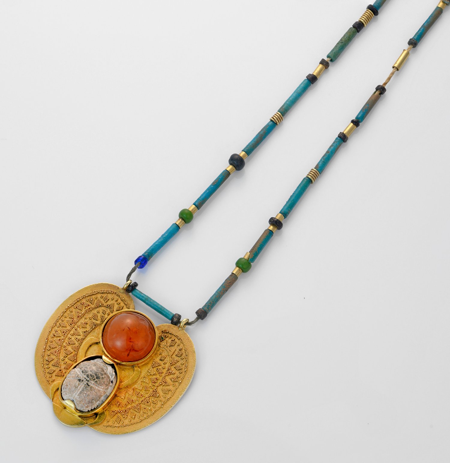 Lot 926: Ägyptisierendes Collier mit Skarabäus-Anhänger