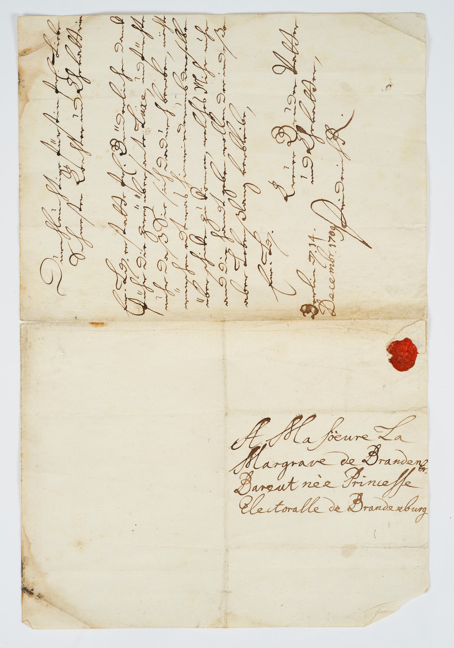 Letter by Frederick I, King in Prussia to his sister Elisabeth Sophie of Brandenburg, dated 1709. With seal. Minor water damage.