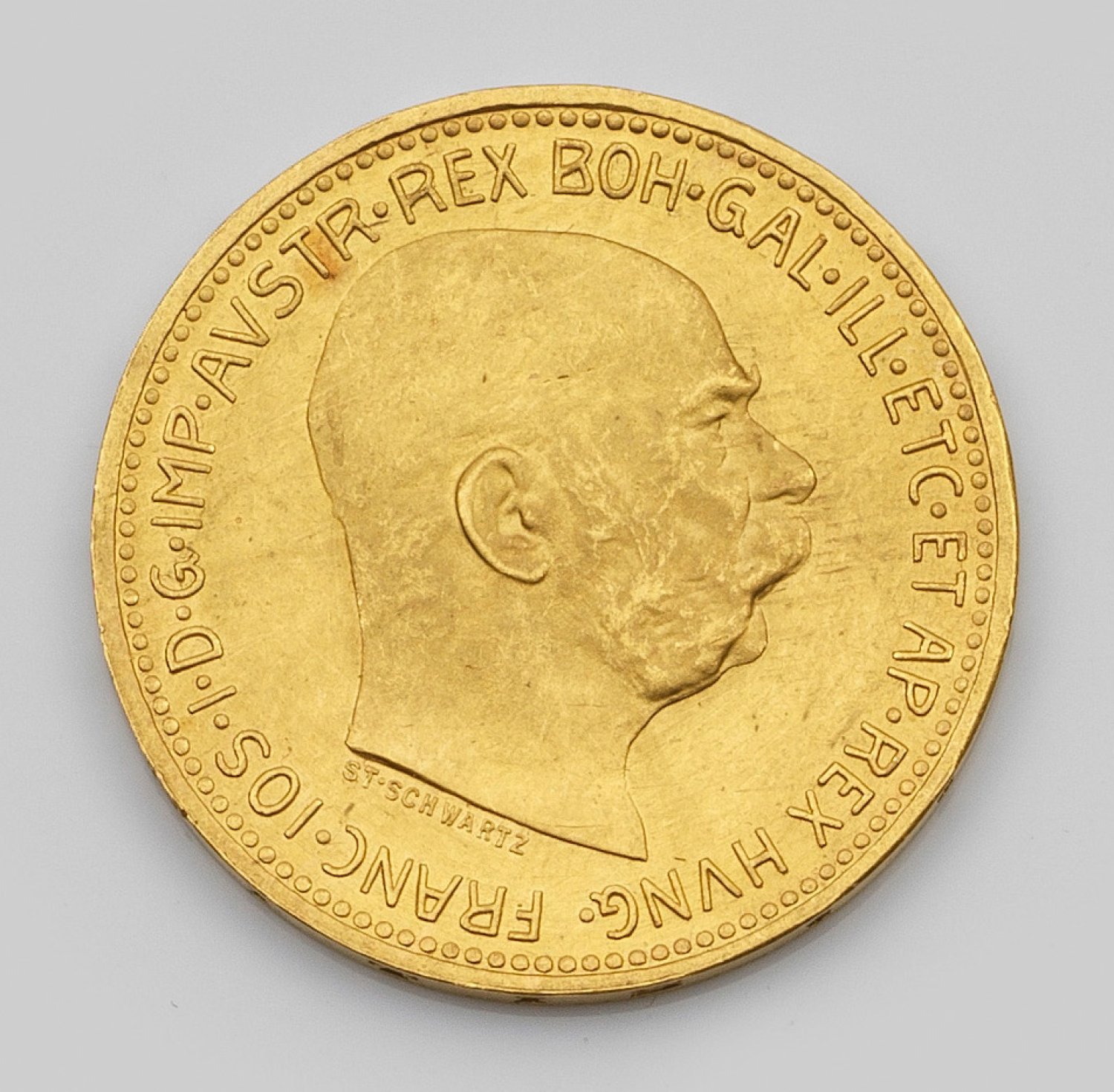 Coin "Austria 20 korona Franz Joseph I. 1915" in 21,6 k gold. Re-minting.