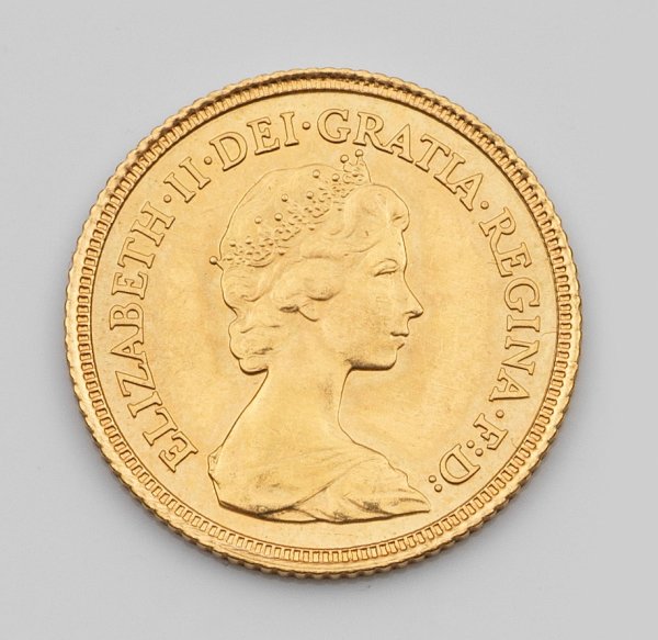 Coin "Great Britain Half Sovereign Elizabeth II 1982" in 22 k gold.