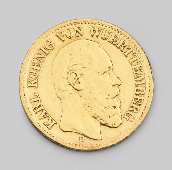 Coin "German Empire 10 mark Karl I. of Württemberg 1876" in 21,6 k gold.