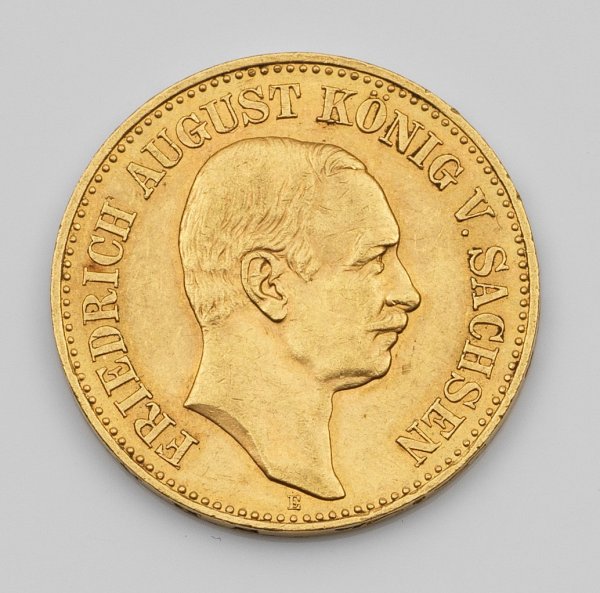 Coin "German Empire 20 mark Friedrich August III. 1905" in 21,6 k gold.