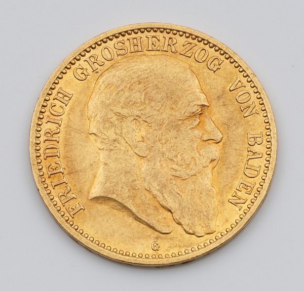 Coin "German Empire 10 mark Friedrich I of Baden 1907" in 21,6 k gold.