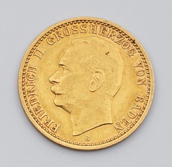 Coin "German Empire 10 mark Friedrich II of Baden 1909" in 21,6 k gold.