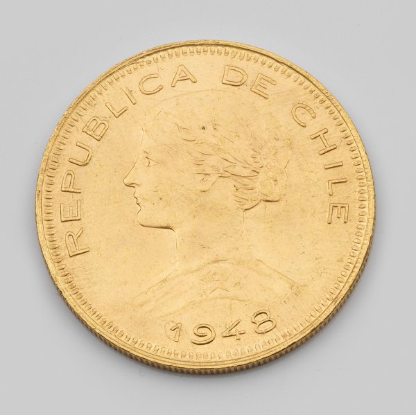 Coin "Republic of Chile 100 Pesos 1948" in 21,6 k gold.