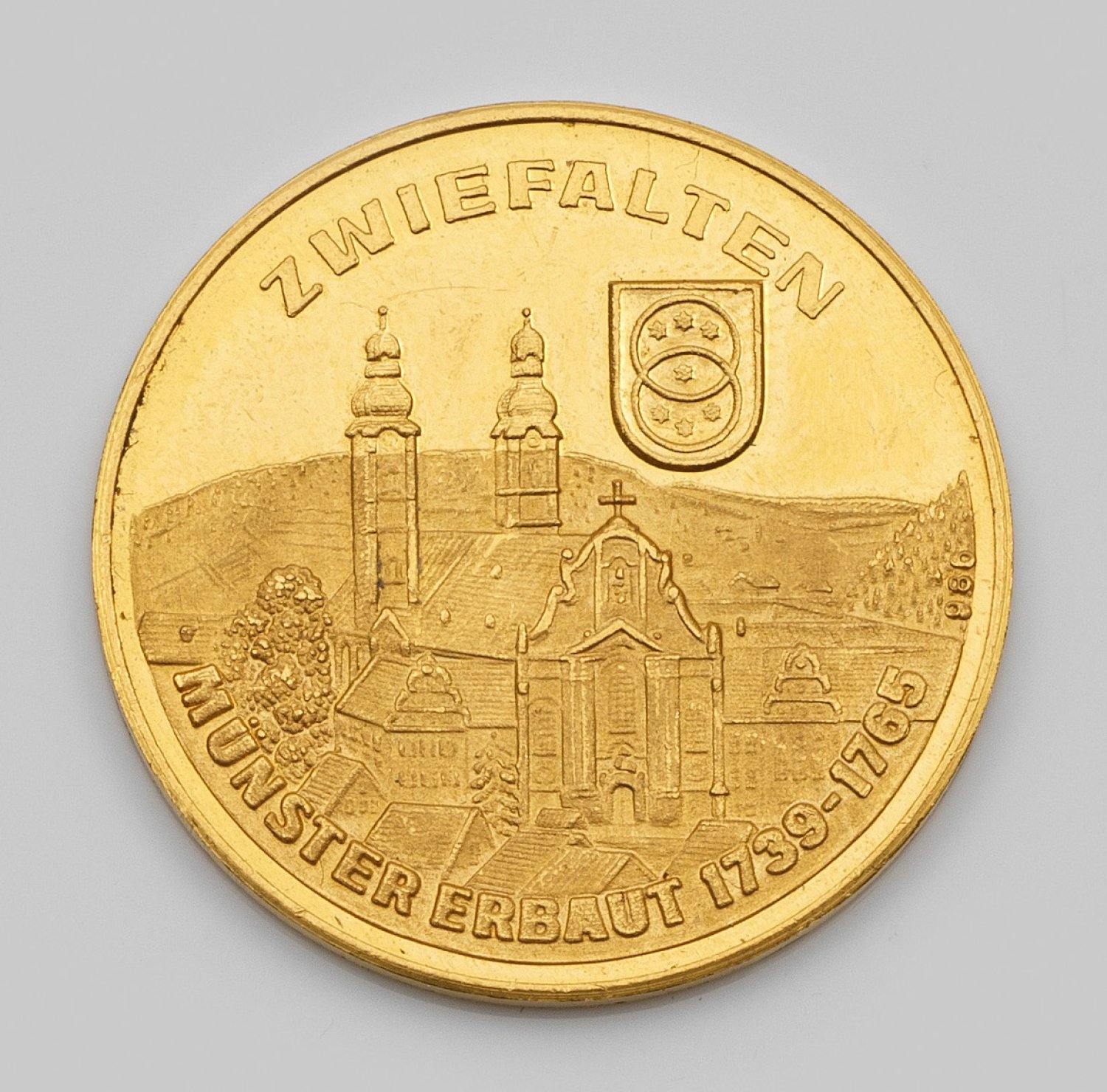 Medal "Zwiefalten - Münster erbaut 1739-1765" in 23,6 k gold.