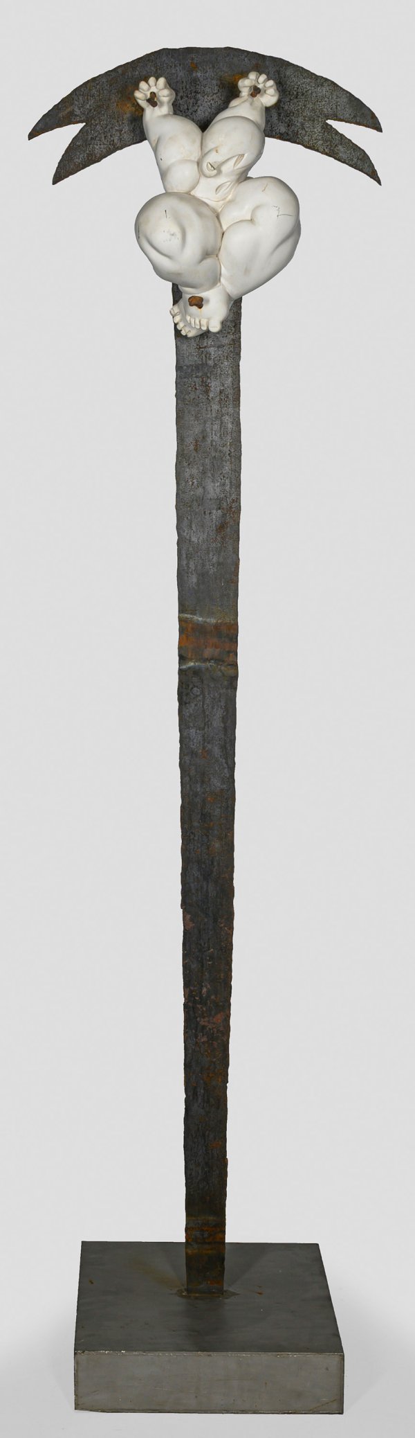 Large mixed media sculpture (marble cast, steel, stainless steel and wrought iron.