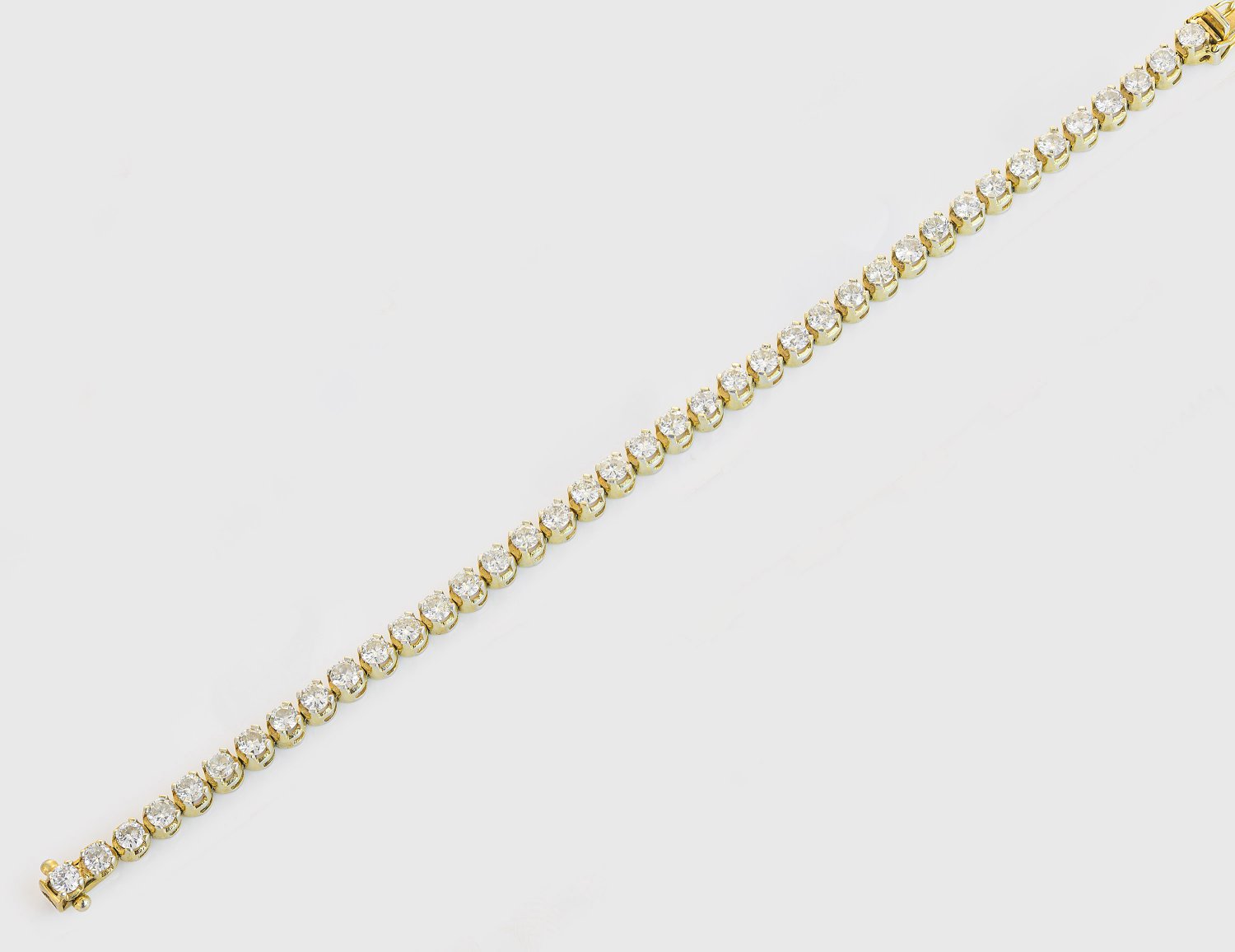 Bracelet set with brilliant solitaires each approx. 0,11 ct. (H/si-i), total 4,29 ct., in 14 k gold.